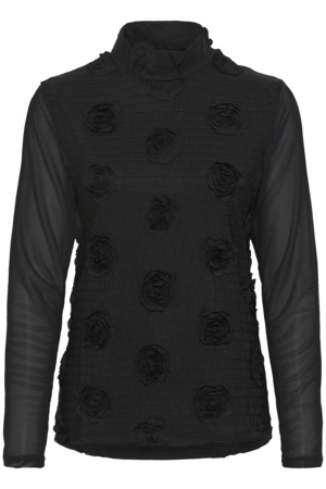 Sød Culture bluse med et boheme agtig udtryk. Blusen har en fin prikket struktur på stoffet samt et let hulmønster som løber i et stribet mønster. Pasformen er løs og behagelig. Halsudskæringen er rund med stolpelukning. Kan styles på utallige måder.