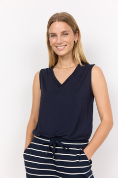 Lækker Banu sweatpant fra Soya Concept. Disse skønne bukser har en justerbar talje med elastik og snøre. Bukserne har en løs pasform. Style disse bukser med en af de matchende sweatshirts for et smart hjemmelook.
