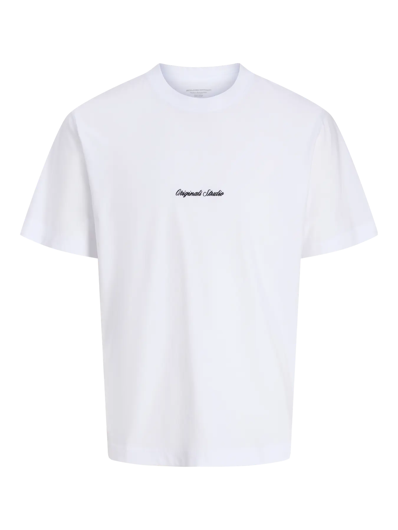 Skøn Calvin Klein basis T-shirt til Teen Dreng i hvid med teksten Calvin Klein Jeans trykt i sort på brystet. Den er med korte ærmer, rib O-hals og normal i pasform. På nederste venstre ærme står der cK (ikke vist på billedet.)