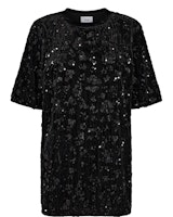 Super flot og festlig palliette kjole fra Nümph. Den knælange kjole har et kort ærme med lidt længde, rund halsudskæring med velourkant og indvendigt er et mesh foer. Style den med strømpebukser og lange støvler.