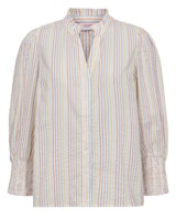 Culture har designet denne søde og feminini skjorte. Skjorten har flotte lyse striber, høj slids i siden samt en flot rose som sidder på et bånd i halsen. Rosen kan tages af og evt bruges i håret eller som bælte.