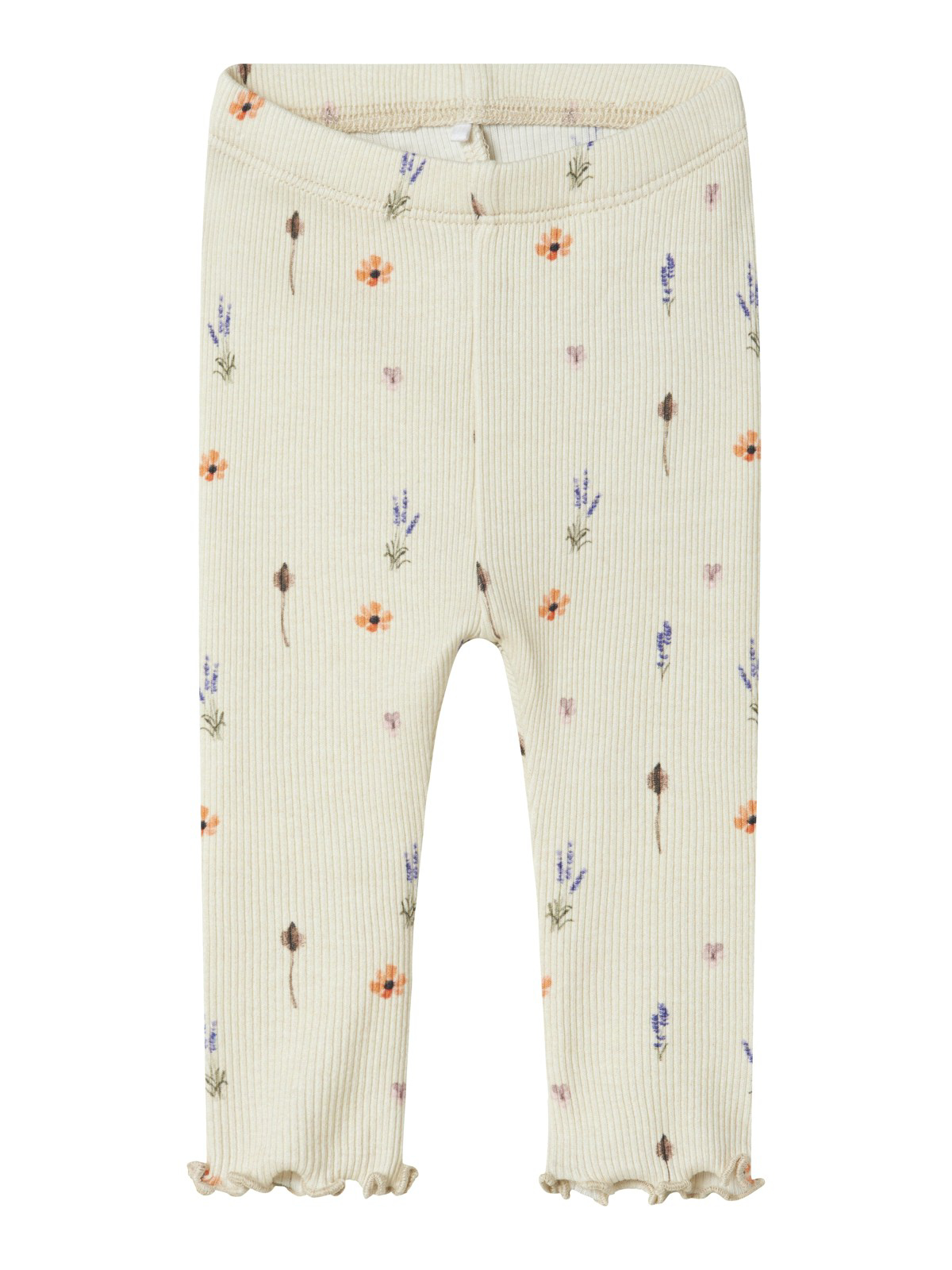 Super fine leggings fra Hummel i mørk navy med blomsterprint over det hele samt guld logo på front. De har elastikkant og kan styles med en kjole over eller en kort overdel.