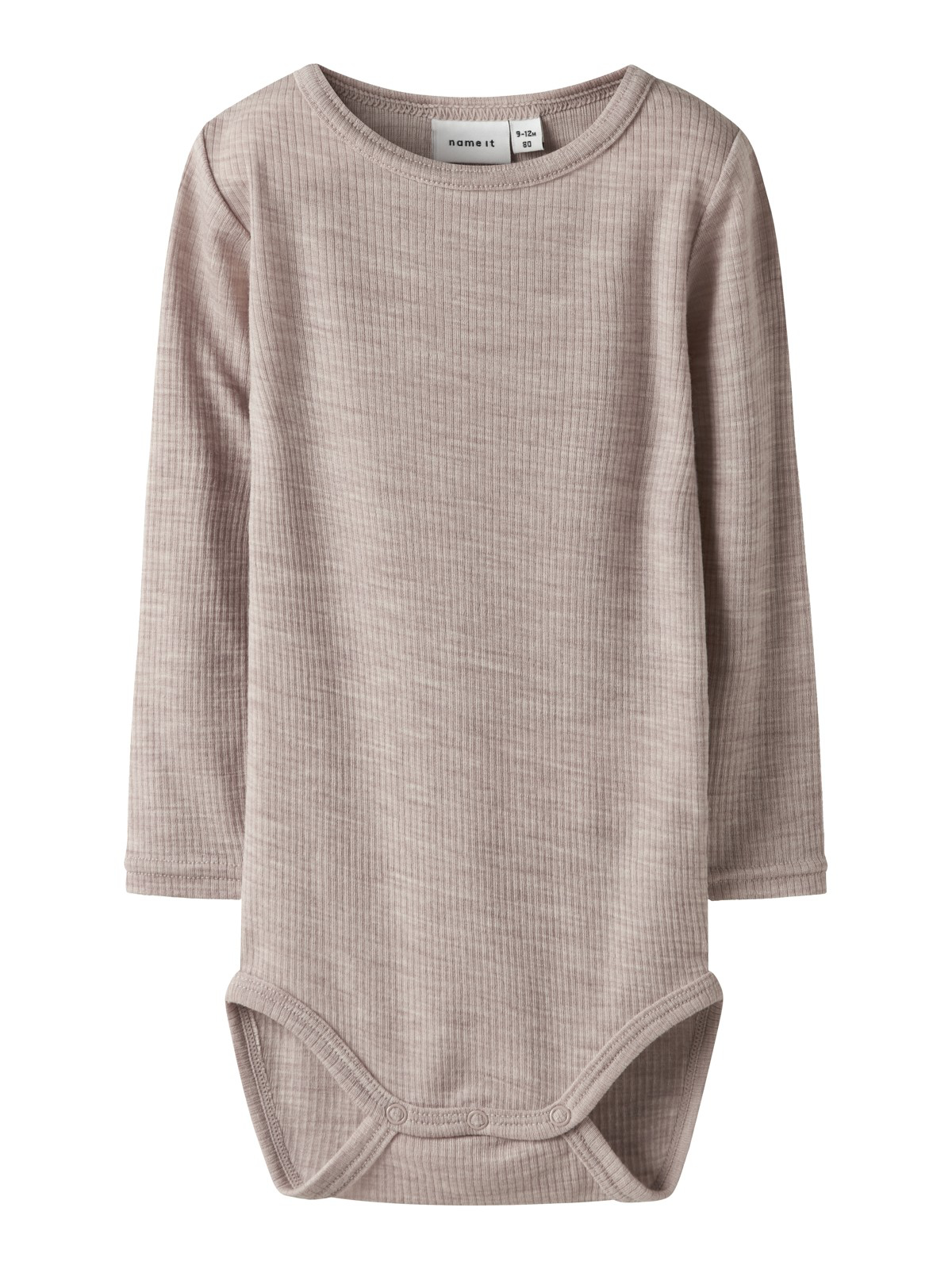 Super fin Hummel body til dreng i blå, og til pige i lyserød. Den er med lange ærmer, O-hals og med logo på front. Den har praktiske trykknapper på højre skulder og mellem benene.