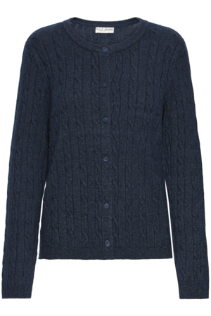 Blød og lækker Culture cardigan til basic garderoben. Den er gennemknappet med små fine perlemors knapper og har ribkant på en runde hals, ærmekant og bund kant.