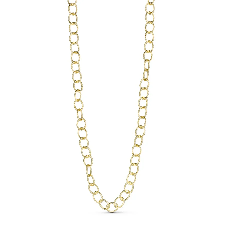 Super flot Leona halskæde fra Pure By Nat. Kæden har et modigt design som afspejler både det rå og elegante. Hver halskæde er håndlavet og er belagt med 24K guld.
