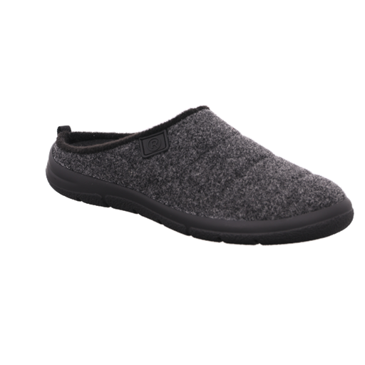 Let og varm hjemmesko i filt i en flot grå mørk antracit farve. Den er med en kraftig sål, så den kan bruges udenfor til at tømme posten m.m. Modellen er lavet af et lækkert filt materiale, som sørger for at holde fødderne varme hele dagen.