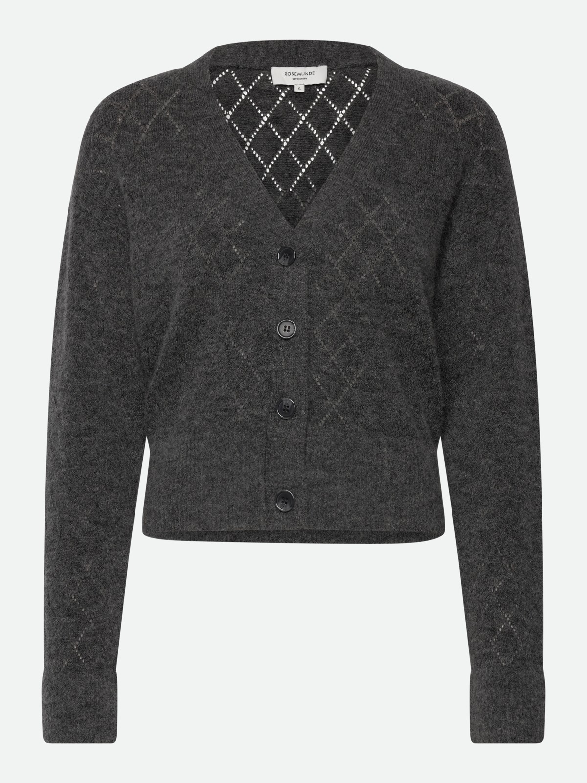 Skøn Pulz Jeans cardigan i den blødeste viskose kvalitet. Cardiganen har et flot kabel mønster som giver strikken struktur. Halsudskæringen er rund med ribkant.