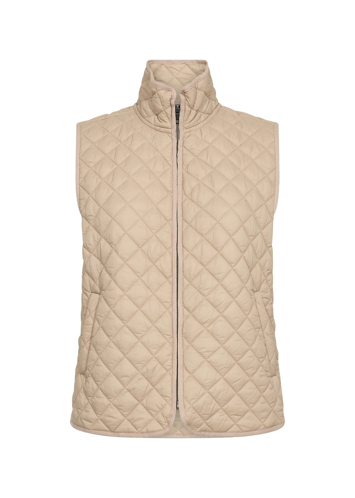 Super cool Culture vest med let indsnævert kant nederst. Vesten har en fin rund hals og lukkes med lynlås. Den har som en lækker detalje elastik i taljen, så det er muligt at puffe den op.