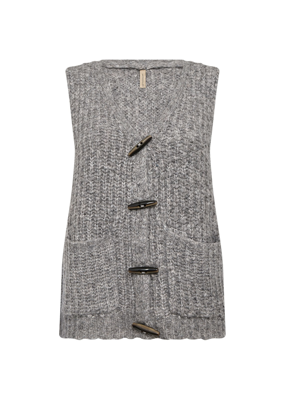 Cool Soya Concept vest fremstillet af 100% genanvendt polyester. Vesten har en høj halsudskæring, en løs pasform, lynlåslukning og et teddy-materiale. Style den med en klassisk skjorte og et par habitbukser for et flot look.